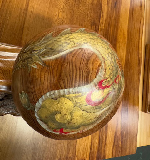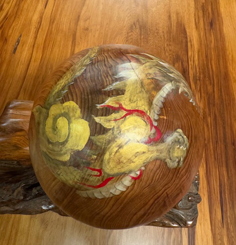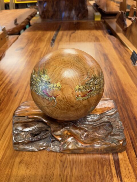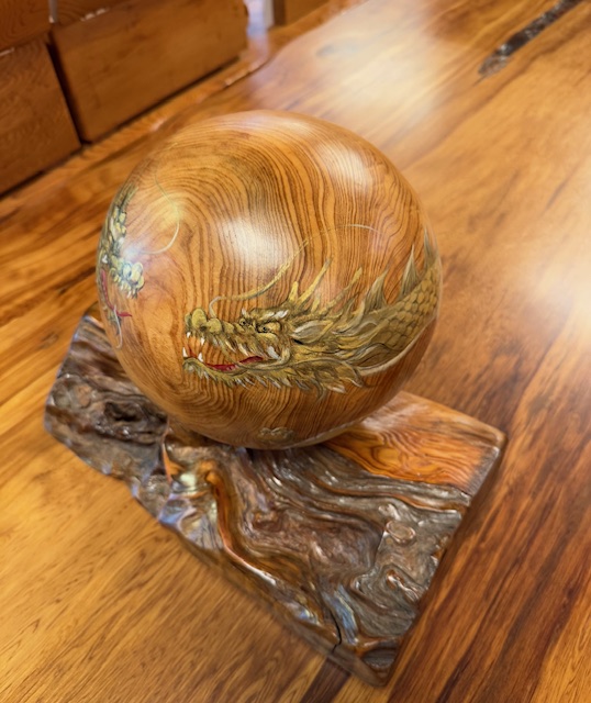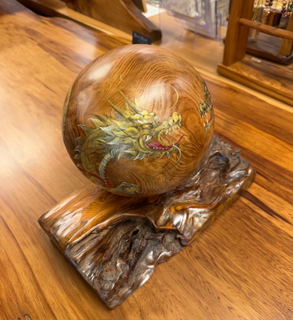 屋久杉 双金龍 宝珠(20㎝) 屋久杉工芸品 2025.09.24 有名作家が書いたリアルな金龍が今にも動き出しそうな屋久杉宝珠 龍神の一種である金龍は、神聖な存在として崇められています。富と繁栄、知恵、長寿の象徴であり、特にビジネスや財運の向上に繋がり、古くから人々を災害から守り、幸運をもたらすと言われています。