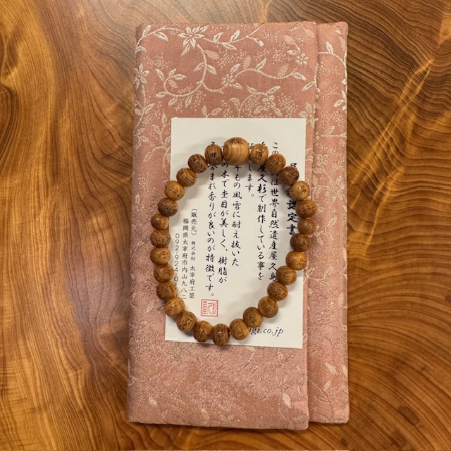 屋久杉は 樹齢千年を超えることから「長寿の象徴」とされ、「厄が過ぎる」という語呂合わせもあり、縁起物としても珍重されています。 成長が非常に遅いため年輪が密で、独特の美しい木目(杢目)が現れます。特に「虎杢(とらもく)」や「泡瘤(あわこぶ)...