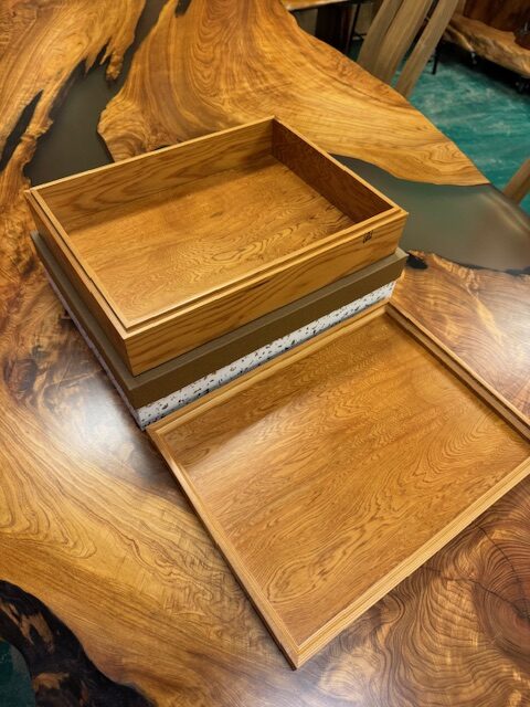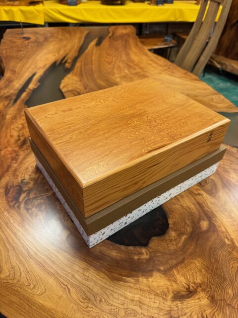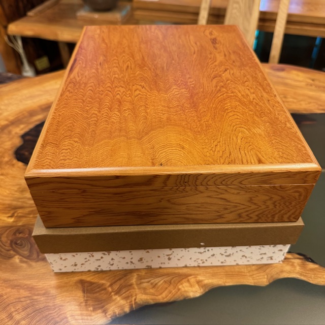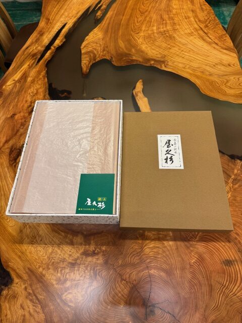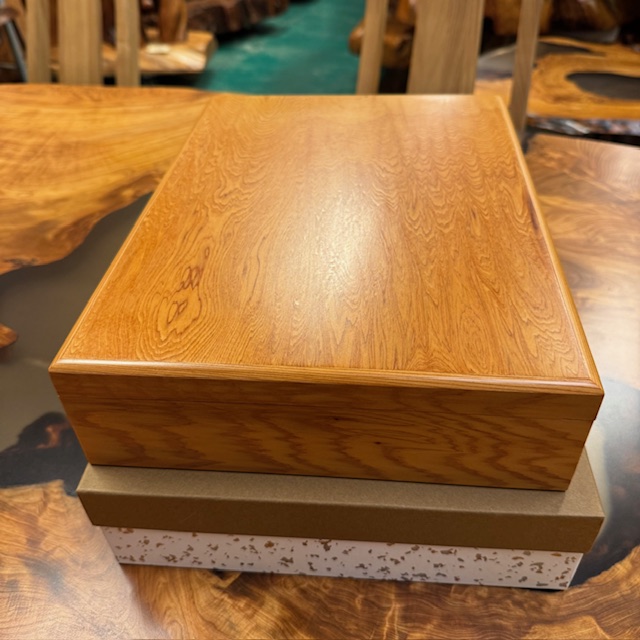 屋久杉 文箱 屋久杉工芸品 2025.10.17 美しい良杢で制作しております。 (サイズ)外寸:約24x32㎝高さ7㎝ 内寸:約21x30x5㎝ 笠岡様専用ページをお作りしておりますので 気に入られましたらどうぞよろしくお願い致します。